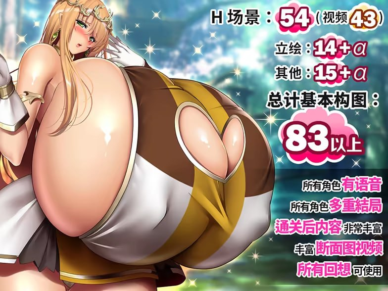 丰富HCG × 断面动画:全游戏收录54张HCG图、83个基本构图、14个角色立绘,包含断面结构、巨乳物理动画、各种姿势与视角,一次满足你的爆乳性癖!