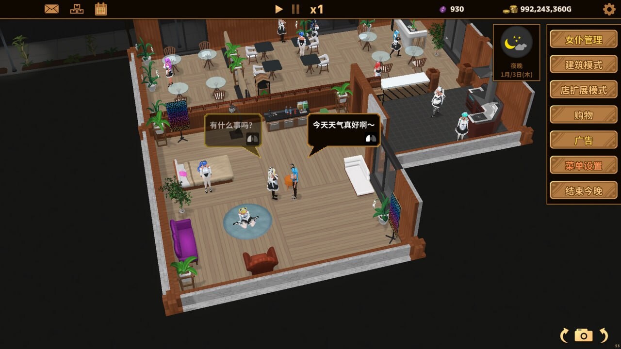 -资金增加后,雇佣更多女仆,实现经营的自动化。
