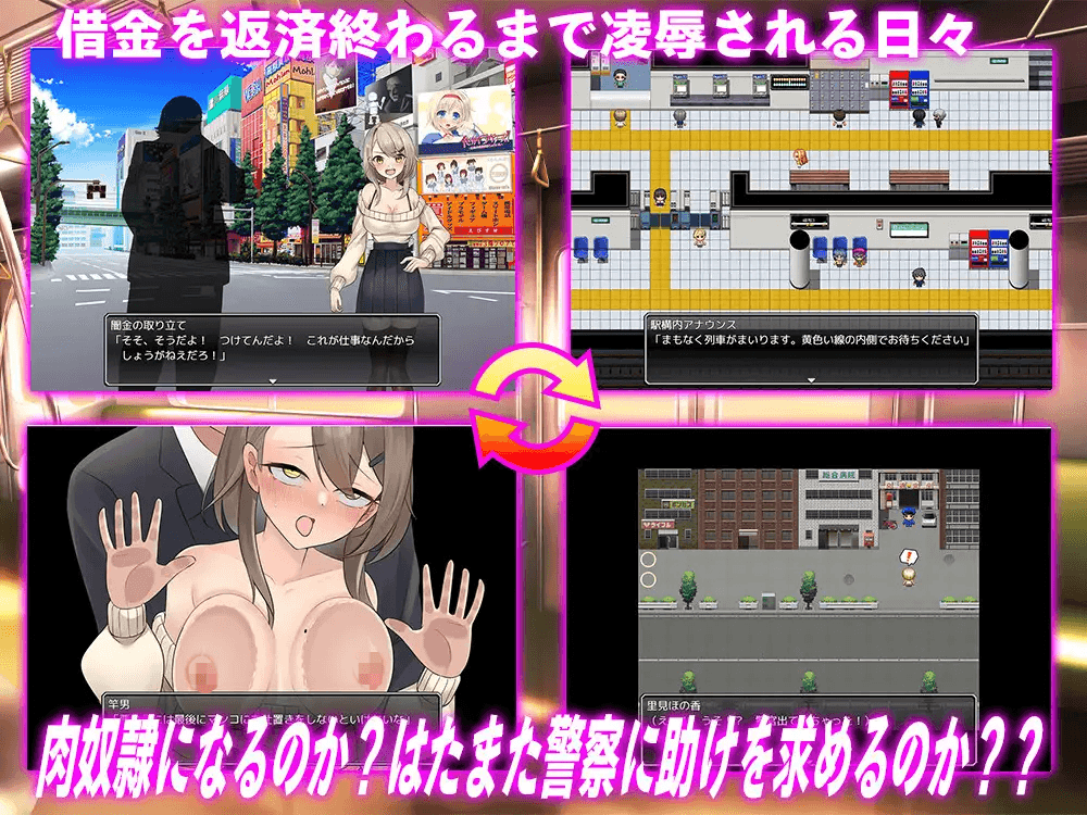 被强迫乘车的女主角里见穗香,在车厢内遭遇侵犯,且行为逐步升级。